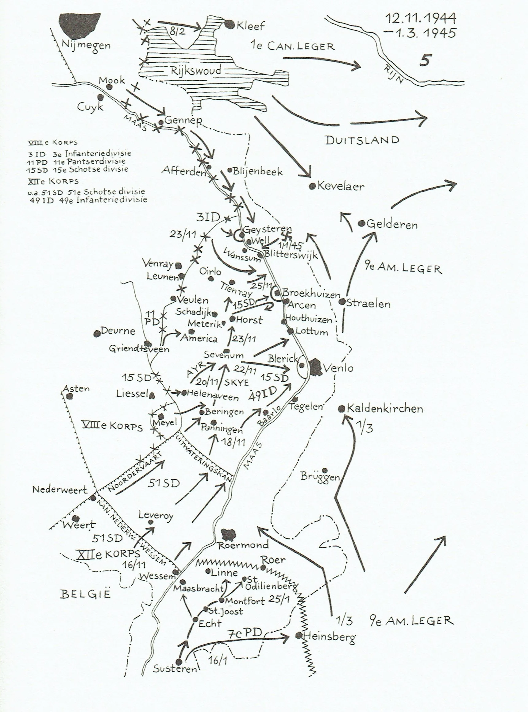 At Skye the Gordon Highlanders reached Sevenum at late afternoon, the Argyll and Sutherland Highlanders occupied Vorst east of Sevenum.