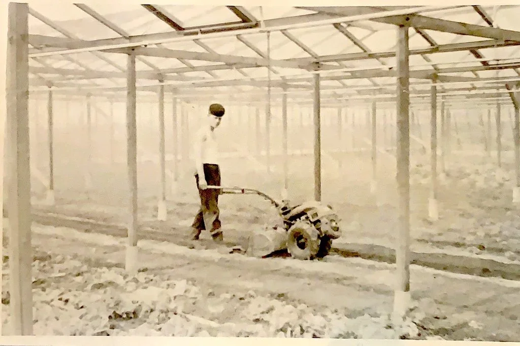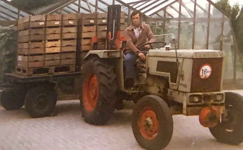 Theo Bakker in de kas van Jan Bakker op het Zinkske