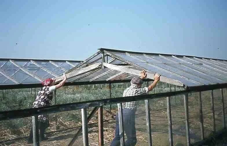 Bijna elke tuinder had wel platglas. Dat waren ruiten van 73 bij 165 centimeter, gevat in houten lijsten. Ze werden broeiramen of eenruiters genoemd.