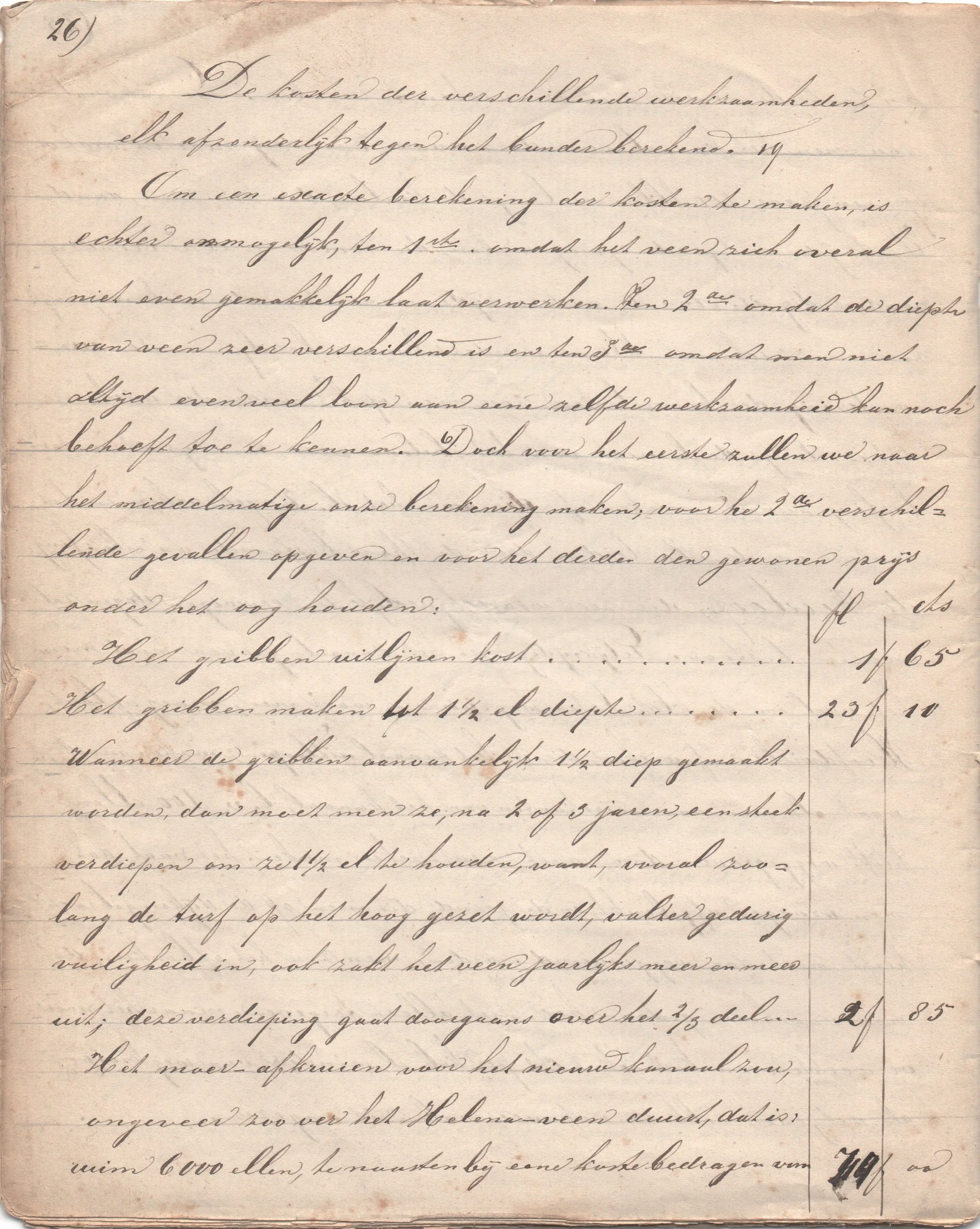 Om een exacte berekening der kosten te maken, is echter onmogelijk, ten 1ste, omdat het veen zich overal niet even gemakkelijk laat verwerken.